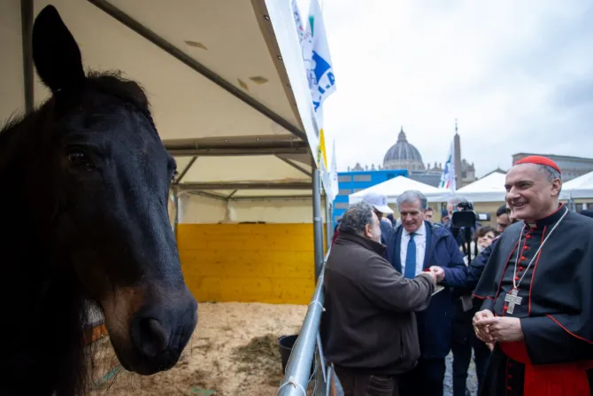 Los caballos, vacas, burros, conejos y gallinas fueron transportados por los ganaderos de la Asociación de Criadores Italianos hasta la famosa plaza Pío XII, frente a la Plaza de San Pedro.